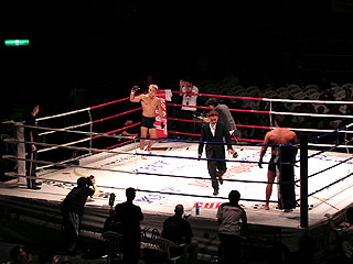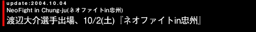 ![]() 昨年12月に韓国のソウルで行われた「NeoFight~Into the Fire~」ヘビー級16人制トーナメントに出場し、決勝ラウンドへ駒を進めた渡辺大介選手(パンクラスism)が、今月1日(金)から7日(木)まで韓国の忠州で開催中の「第7回忠州世界武術祭」二日目に行われた「NeoFight 5」に出場し、他3選手の体重が100kg前後とい体格差ハンデをはねのけ見事準優勝を飾った。試合結果は下記の通り。 ■ 準決勝第1試合 ○ブランドン・ヒンクル(1RマウントパンチKO)キム・ソン・ギョム× ■ 準決勝第2試合 ○渡辺大介(判定26-24)イ・ワン・ソブ× ■ 決勝 ○ブランドン・ヒンクル(判定27-25)渡辺大介× 優勝:ブランドン・ヒンクル 準優勝:渡辺大介