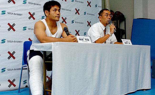 ![]() ■ 日 時:8月25日(木) 16:00〜 ■ 場 所:P'sLAB東京 ■ 出席者: ・菊田早苗選手(GRABAKA/ライトヘビー級1位) ・坂本靖 株式会社ワールドパンクラスクリエイト 常務取締役 ![]() ■ 坂本常務:10月2日横浜文化体育館大会、近藤有己選手とタイトルマッチ予定でした菊田選手ですが、練習中の怪我ということで、今大会を欠場することになりました。この一戦は非常に反響も大きく、リリースを流して終わりというわけにはいかないような試合ですので、菊田選手も非常に辛い思いとは思うのですが、こちらに来てもらいまして、会見という形をとらせていただきました。怪我の連絡があったのは先週なのですが、そこから菊田選手のほうで、いろいろドクターと検査、治療等あったのですが、昨日、最終的に10月2日は不可能だという結論がドクターのほうから出まして、菊田選手もそれを苦渋の思いで承諾し、弊社のほうに連絡があり、弊社のほうでも至急で申し訳ないですが会見ということで発表いたします、ということが今日までの流れになっています。 ■ 菊田早苗:この度は、パンクラス、その他関係者の皆様にご迷惑をおかけしたことをおわび申し上げます。先週の練習中に、マットがちょっと汗でスリップして、その時に内側靱帯をバキッという感じで、はがれるような感じになってしまいました。特にものすごく(過度に)力をこめてたとか、気を抜いていたということもなく、本当に集中して練習をしていただけなんですけれども、突然のことで、自分自身が一番びっくりしております。それで、今お話にあったように、先週、治療らしい治療はできなかったんですけど、昨日またドクターに見てもらって、状況を見てもらったんですけど、全治最低2ヶ月かかるということで、10月の試合が間に合わなくなりました。内側靱帯の完全断裂ではないんですけど、内側靱帯部分断裂ということで、伸びきっちゃてるという状態で出血しているという状況です。 : 怪我をした正確な日にちは? ■ 菊田早苗:先週の火曜日(8/16)です。 : スパーリング中ですか? ■ 菊田早苗:組技のスパーリング中に立ち技やっているときに、投げられそうになったのでふんばって足を出したら、そのまま汗ですべって膝が曲がっちゃったというか。 : 熱望した試合が中止になったことに関しては? ■ 菊田早苗:(怪我を)やったときは、自分で望んで決まった試合だし、何がなんでも試合したかったんで、非常に大ショックだったし、怪我の前まではものすごく精神的にも肉体的にも充実していて、一番いい状態で戦えるなって思っていたんで、非常にショックだったんですけど、これで終わりと考えると辛いので、希望としては、延期ということで、今年中に必ずタイミングを見てやりたいと思っています。タイトルマッチとか、場所とか、そういうのは全然関係無しで、とにかく近藤選手とのリマッチというのを今年中にやりたいと思っています。もともとが10月前半の試合の予定だったんで、今年中と言っても2〜3ヶ月の間でやりたいと思っています。 ■ 坂本常務:かなりちょっといろんな方面から考えないといけないというのがありまして、全治2ヶ月ということで、年内試合可能なのかという所が1つあります。また、興行のスケジュールとなると、次は11月4日の後楽園、その次が12月4日のディファ有明になりますので、果たしてそこで近藤-菊田戦を行うのかというと、ちょっと興行的な立場から言ってクエスチョンマークがついてしまうと。何しろ昨日の今日なので、結論としては出てないんですが、案としては、例えば別の会場を取ってしまって、そこでワンマッチのみでやってしまう、という案も出てはいます。近藤選手も菊田選手との試合を特別に感じていますので、万全になって試合ができるのであれば、いつでもかまわないとは言っていました。会社としても、来年というよりは、できれば年内でやりたいと。この試合を楽しみにしてくれているファンも非常に多くて、チケットの申し込みもかなりの枚数になっていますので、そういう方になるべく年を越さずに年内で試合を見せてあげたいと考えています。最終的な結論は、実行委員会、会社的な話になってしまうんですが、各方面と調整して、早急に出したいと思っています。 : 10月2日の近藤選手の相手に関しては? ■ 坂本常務:全治2ヶ月という微妙なところがありまして、来年以降にリマッチということであれば、近藤選手の試合はタイトルマッチとして考えるというところもあるんですが、年内に菊田選手との試合が可能ということであれば、10月にタイトルマッチをしてしまうと、もし12月に試合となると2連続でタイトルマッチになってしまいます。ただ、10月2日のタイトルマッチを期待している方も多いと思いますので、そのへんがまだ最終的な結論は出ていません。しかし、早い段階で対戦相手は確定したいと思っていますので、9月の初旬には決定して発表したいと思っています。 ![]() |