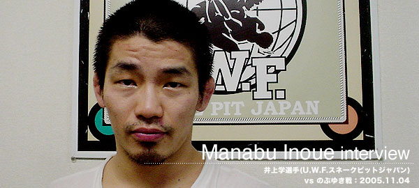 ![]() ![]() ![]() : まずは8月のネオブラッド・トーナメントの話を伺いたいのですか、決勝戦で柳澤雅樹選手(PPT)と対戦し、優勝された感想は? ■ 井上学:準決勝までは全然、自分の思った通りに出来なかったですね。簡単に下になったりしたので、今回は絶対に下にならないように、下になっても直ぐ動いて上になって攻めようと思っていました。その意味では作戦通りに出来たのですが、そこからまだ攻め切れなかったし、フィニッシュにもっていけなかったというのが反省点ですね。 : 柳澤雅樹選手にアマチュア時代のリベンジを果したわけですが試合を終えて柳澤選手の印象は? ■ 井上学:前も下からの十字でやられて、下からが巧いというのは分かっていたので、それを凌いで上から攻められれば勝てるかなと。昔やられた人に勝って自分が少しでも成長したというのが分かったし、それは練習の成果が出たってことなので嬉しかったですね。 : 優勝をしてまわりの反響はいかがですか? ■ 井上学:いつもは試合が終っても反省ばっかりだったのですが、今回はロビンソン先生や宮戸先生に試合を見に来て頂いて嬉しかったですね。 : ビル・ロビンソン氏や宮戸優光氏も応援にいらっしゃっていましたが、アドバイスか何かありましたか? ■ 井上学:ロビンソン先生はスネークピットのジムからアドバイスをもらっています。不利な態勢になったら止まらない。そこで止まらないと言われていました。宮戸先生からも止まるなと言われてきました。 : 動き続けろと。 ■ 井上学:そうですね。ハイ。もし、悪い態勢になっても止まらずに。 : それが勝利に繋がったと。 ■ 井上学:そうですね(笑)一回、スイープで捲られちゃったんですけど、直ぐに立ったので何もダメージなくて、逆に相手はスイープするに体力使って疲れたのじゃないかな。 : アドバイスと作戦通りだったわけですね。 ■ 井上学:そうですね。下にならないというのは作戦通りだったのですけど、もうちょっと上から殴りかったのですが、足が捌けなかったですね。 : 今後の課題としてはKOや一本を取る力をつけていくことですか? ■ 井上学:フィニッシュよりも、まずコントロールですね。自分が良いポジションを取ったらコントロールし続けることですね。先生にもコントロール出来ていないと言われるので、良いポジションを取ったら(相手を)コントロールして疲れさせて、そこからフィニッシュに繋げられれば理想的ですね。 : 今度の試合についてお聞きしたいのですが対戦相手の、のぶゆき選手(和術慧舟會RJW/G2)の印象は? ■ 井上学:あまり映像で見たことが無くて『DEMOLITION』5戦5勝という戦績しか分からないですね。 : 試合はご覧になったことありますか? ■ 井上学:映像で見たのが直ぐ終ってしまう試合だったので、あまりイメージが残らないですね。 : では、対策などは立てづらいですか? ■ 井上学:対策は一応考えていますけど・・・。 : それは試合までの秘密と。 ■ 井上学:そうですね(笑) : ネオブラ王者としてどんな試合をお客さんにみせたいですか? ■ 井上学:トーナメントで優勝したのがフロッグだと思われないように、まずは勝つことですよね。 : 今後、パンクラスフェザー級で対戦したい選手などはいますか? ■ 井上学:アマチュアパンクラスの時に負けてしまった、山本篤選手と闘いたいですね。次の試合に勝って、もっと練習してリベンジしたいです。 : 最後に試合を楽しみにしている皆さんにメッセージをお願いします。 ■ 井上学:アグレッシブにいって、良い試合を見せたいと思うので応援宜しくお願い致します。 ■ 井上学選手database ![]() |
