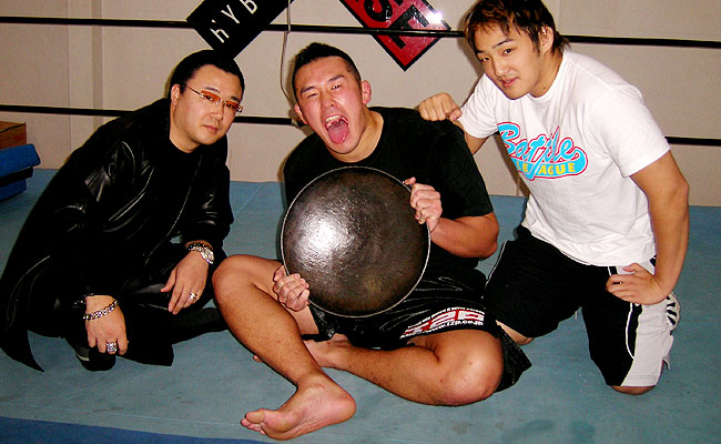 ■ 河野真幸:いつもノープランですから(笑)相手は実績が凄い人なんで、当たって砕けろですからね。チャレンジャーは僕なんで。『PRIDE』で勝ってますからね。何故かセミファイナルですし。プロレスでもしたことがないセミのシングルマッチなんで。気合入れて頑張らないと。セミファイナルっぽい試合をしようと思います。後、タイに修行に行ってたのでムエタイ殺法を・・・じゃなくて、さっきやったガードポジションからのサソリ固めとランドスライドと渕さんに教えてもらったドロップキックで・・・何で笑ってんですか?